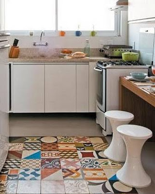 ...no es una idea genial para revestir por ejemplo una losa de hormigón gris?: se le colocaron mosaicos geométricos quadrat tricolor y quedó mucho más alegre!